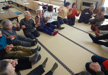 公民館等でご近所の方々と一緒に体づくりを目的に交流し、住み慣れた地域で幸せな暮らしが送れるようお手伝いしています。